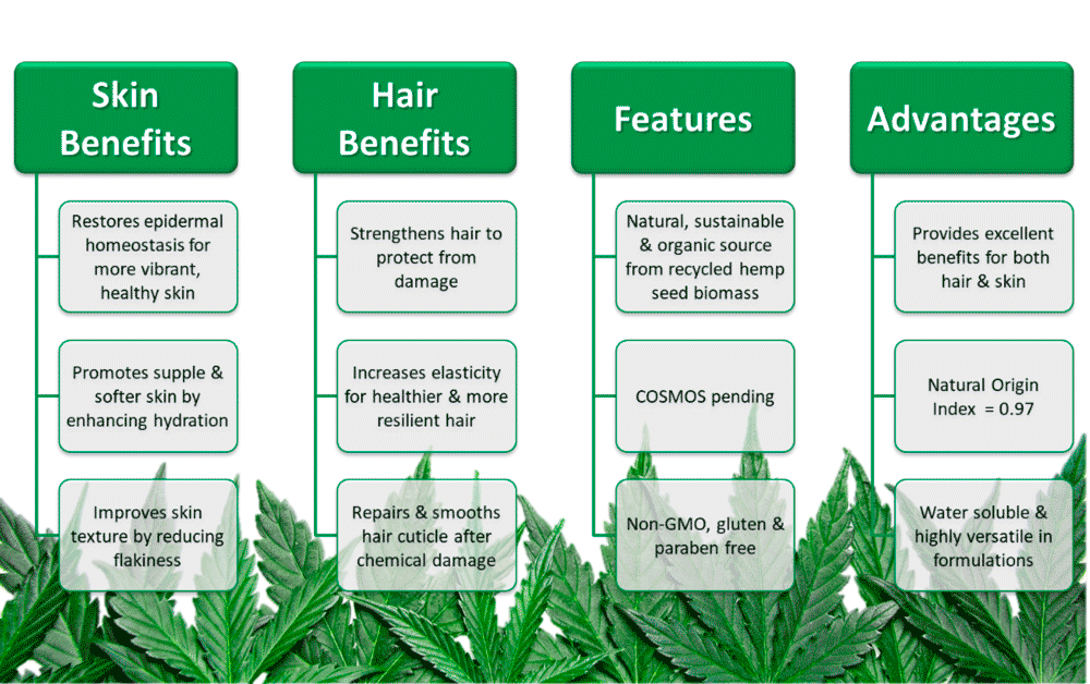 Hemp Tein Z NPNF® es la nueva proteína multiactiva, natural y derivada de superalimentos de TRI-K de semillas de cáñamo para la piel y el cabello. El cáñamo Tein Z NPNF® no contiene CBD o THC, es fácil de formular y es soluble en agua. Proveniente de semillas de cáñamo orgánico, Hemp Tein Z NPNF® proporciona excelentes beneficios tanto para la piel como para el cabello.